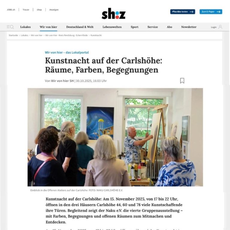 Zwei Ausschnitte des Artikels der SHZ zur Langen Nacht der Kunst auf der Carlshöhe in Eckernförde am 15. November 2025.