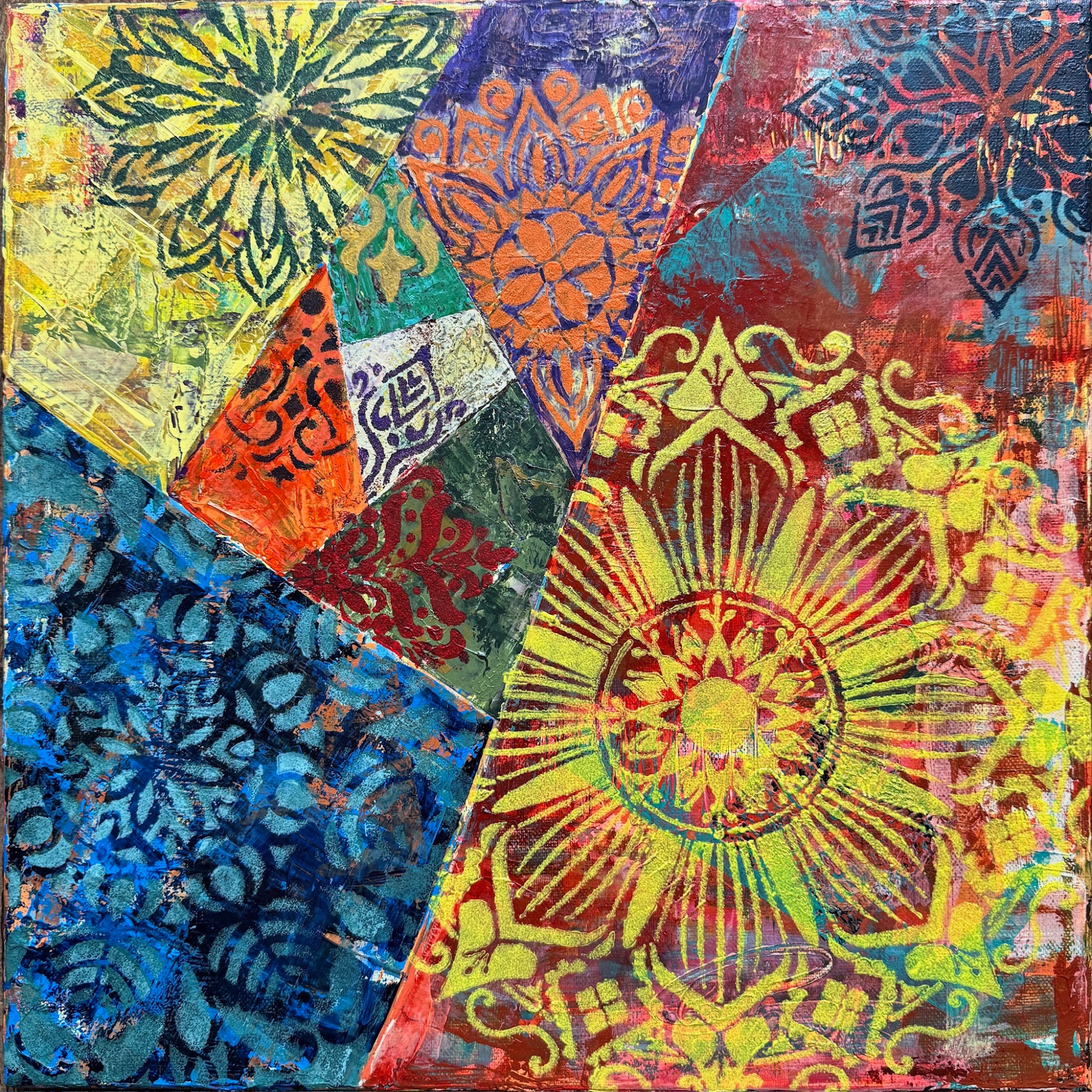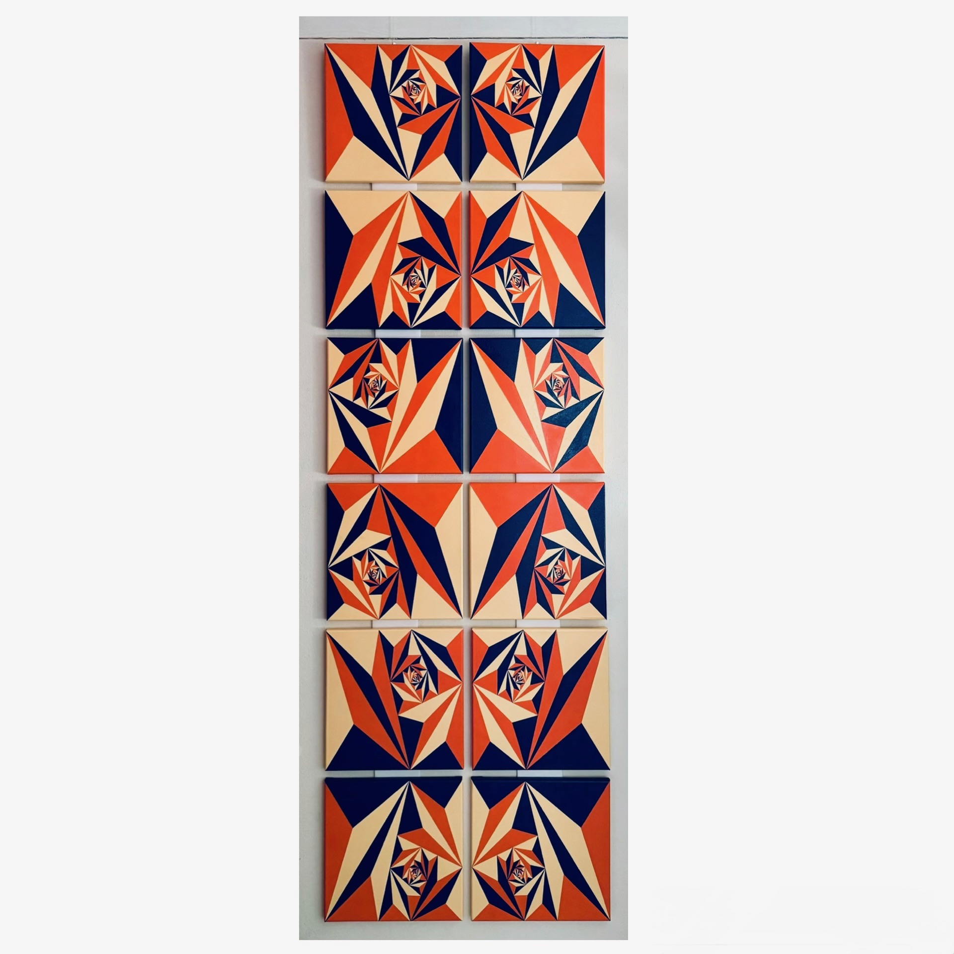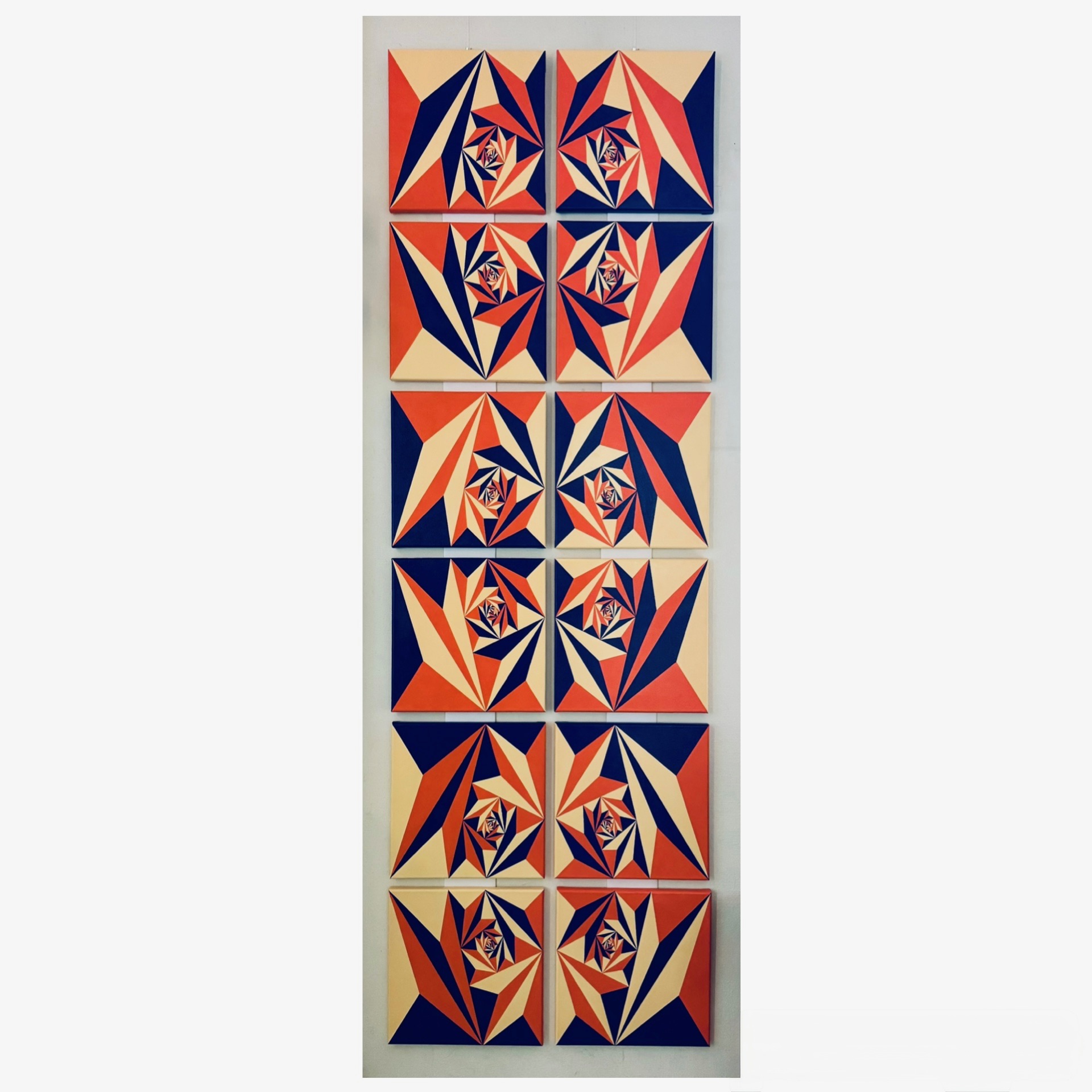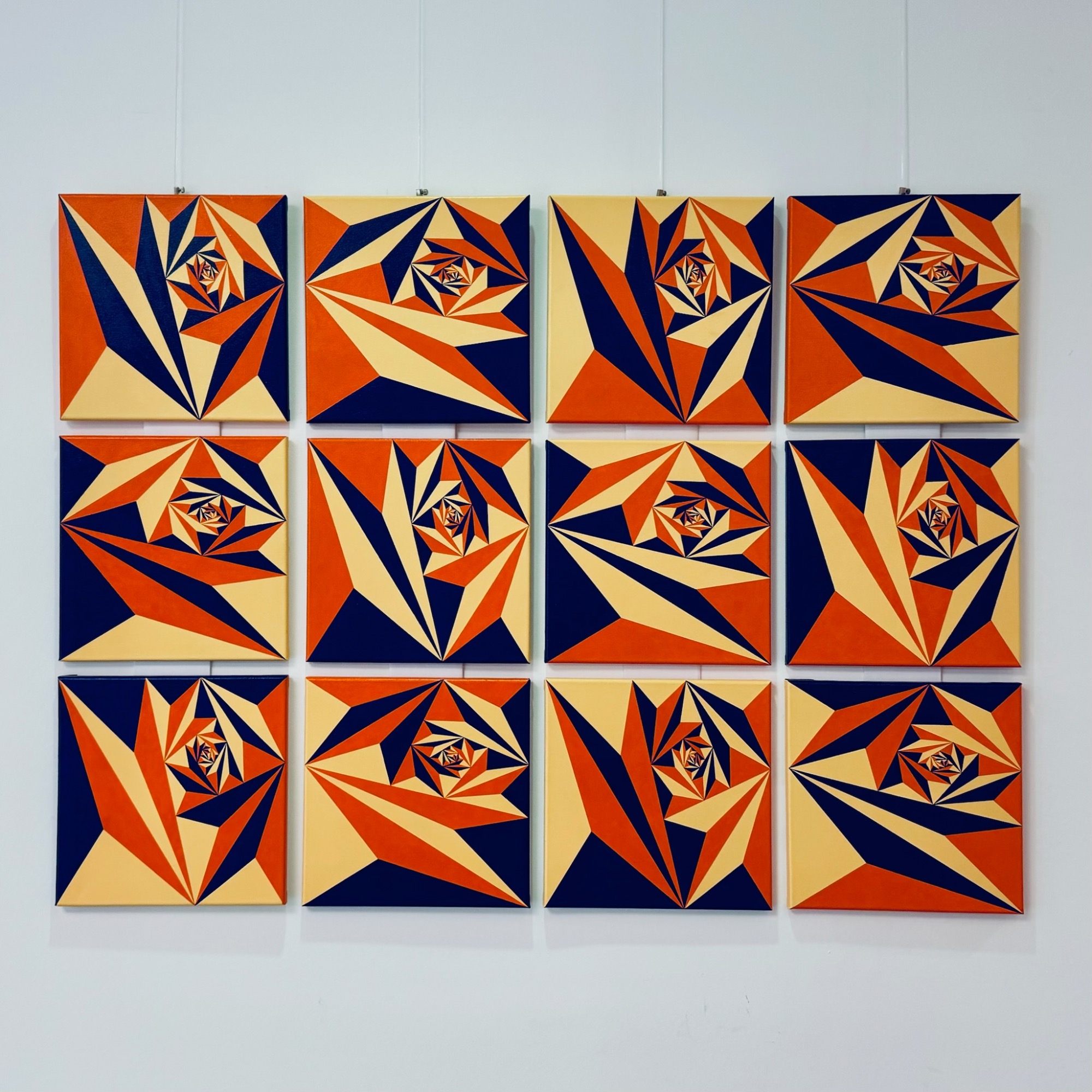 12 x 30/30 cm | Acryl auf Leinwand | #2535 - #2546 864 Dreiecke formen zwölf Rosen – gleich in der Gattung, individuell im Ausdruck.